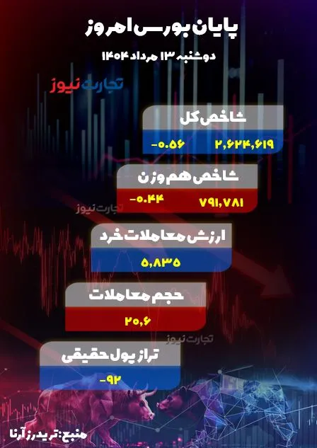 پایان بورس امروز دوشنبه 13 مرداد 1404 / حرکت بازار سهام به سمت تعادل