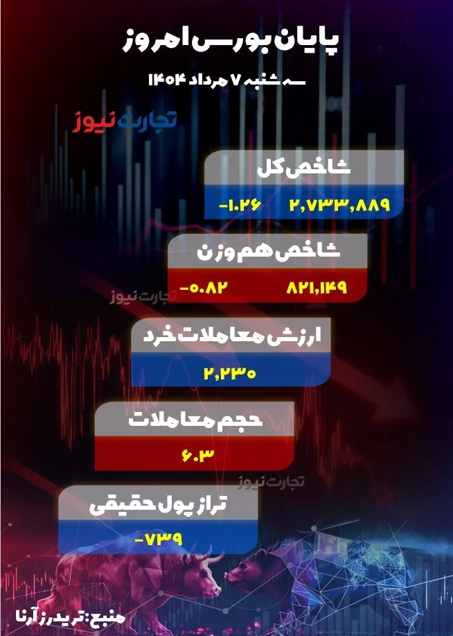 پایان بورس امروز سه شنبه 7 مرداد 1404 / چرت تابستانه بازار سهام؛ حجم و ارزش معاملات سقوط کرد!