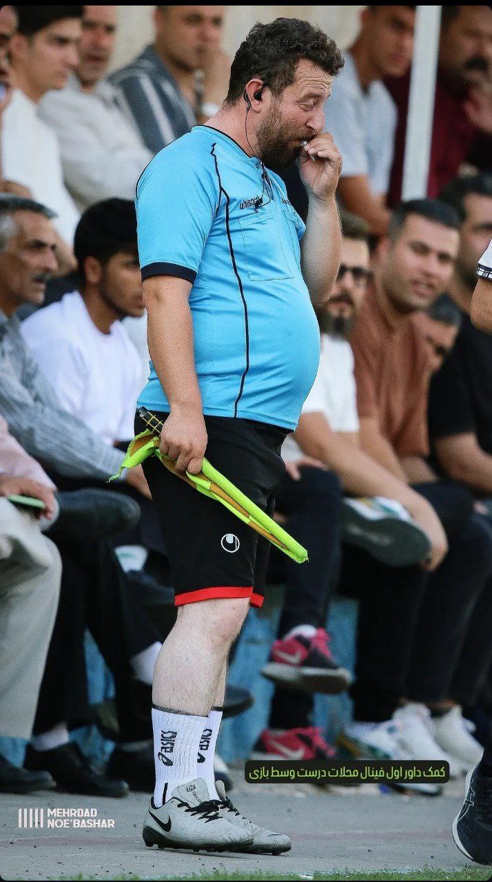 پرچم زدن کمک داور فینال محلات در حال استعمال سیگار در کنار زمین بازی/ تصاویر