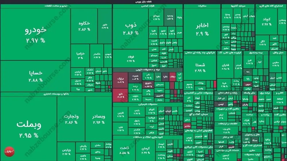 نمادهای بزرگ و چشمگیر مانند فملی، فارس، فولاد، شپنا، وبملت و نوری آنها همچنان نقش رهبری بازار را حفظ می کنند.