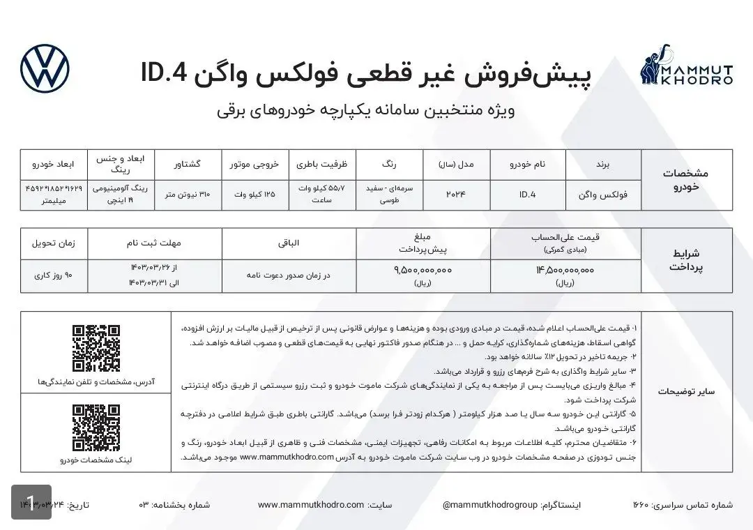 پیشفروش خودرو فولکسواگن ID.4 / منتخبین سامانه یکپارچه خودرو این خبر را ازدست ندهید