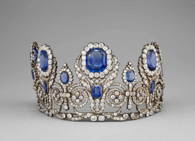 موزه لوور در بیانیه ای اعلام کرد: مشخص نیست که سفارش مجموعه اقلام یاقوت کبود که در گالری موزه نگهداری می شود به اوایل قرن نوزدهم بازمی گردد و توسط افرادی مانند ملکه اورتنس، همسر لویی بناپارت، و ملکه ماری آملی، همسر لویی فیلیپ اول استفاده شده است.