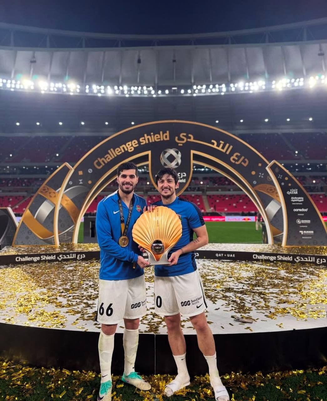 سردار آزمون که فصل خوبی را در امارات سپری می کند و با امضای اولین جام به یکی از ستاره های کلیدی الاهلی شباب تبدیل شده است، با قهرمانی با سعید عزت اللهی، دیگر ملی پوش ایرانی عکس یادگاری گرفت. مدال.