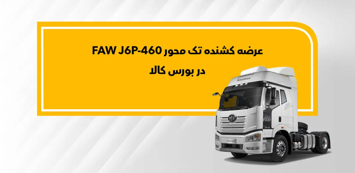 کشنده تک محور FAW J6P-460 سیبا موتور از چهارشنبه ۴ بهمن ماه در بورس کالا عرضه می شود. بر اساس این اطلاعیه قیمت پایه فروش کارخانه ۳ میلیارد و ۷۰۸ میلیون تومان است و درصد پیش پرداخت این معامله ۱۰ درصد قیمت پایه خواهد بود.
