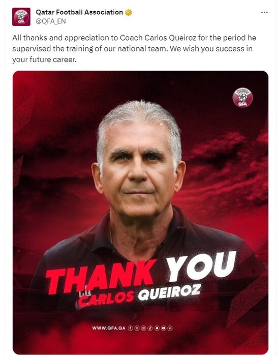 فدراسیون فوتبال قطر در پیامی در شبکه اجتماعی ایکس (توئیتر سابق) نوشت: