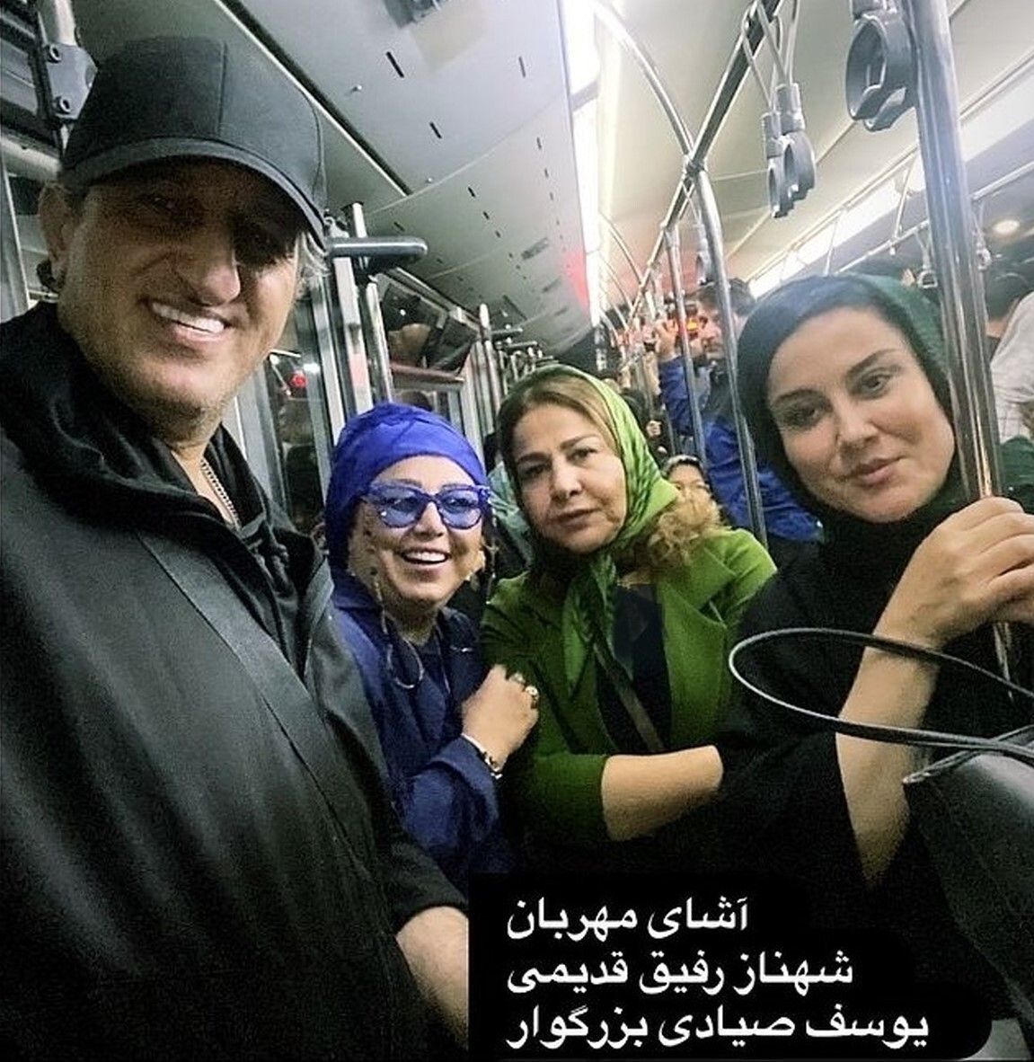 یوسف صیادی بهنوش بختیاری و آشا محرابی در اتوبوس حامل مسافران بین فرودگاه و هواپیمای مشهد حضور داشتند.